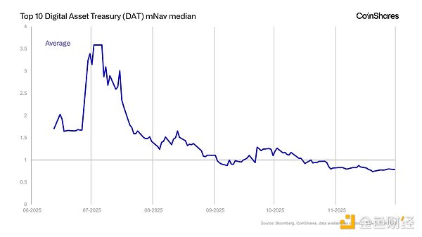 从很多方面来看,确实如此。2025年夏季,许多这类公司的交易价格是其资产净值的3倍、5倍甚至10倍,而现在却都在1倍甚至更低的水平徘徊。接下来,市场走向将出现分歧:要么价格下跌引发无序抛售,导致市场崩盘;要么公司继续持有资产,等待价格回升。我们倾向于后者,尤其是考虑到宏观经济背景正在改善,以及 12 月可能降息,这将更广泛地支撑加密货币市场。