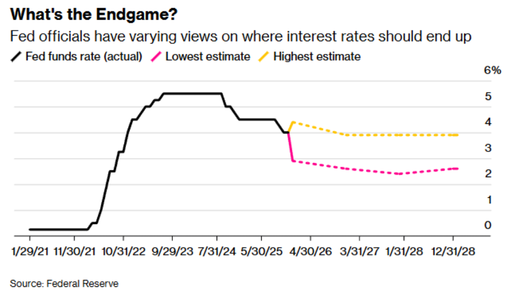 ● 9月公布的最新预测显示,19位美联储官员对中性利率给出了11种不同的预测,范围从2.6%到3.9%不等。这种分歧程度至少是自2012年美联储开始公布此类预测以来的最高水平。